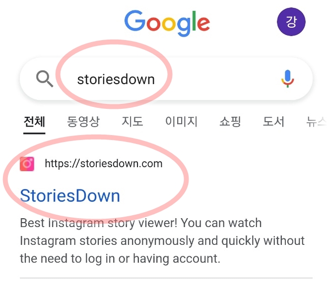 한 가지 불편한점은 인스타의 경우 아이디를 입력할 경우 관련된 사용자들이 나오는데 storiesdown 에서는 정확하게 처음부터 끝까지 틀리지 않게 입력해야 합니다.